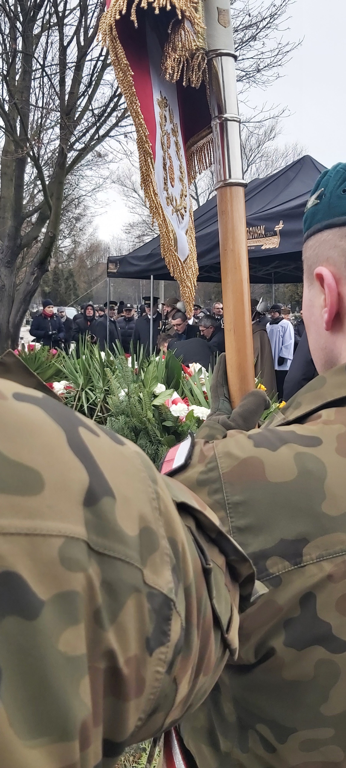 11 lutego 2023 r. uczestniczyliśmy w ostatnim pożegnaniu prof. Wojciecha Narębskiego na cmentarzu Grębałów. U kresu długiej ziemskiej drogi stanął wspaniały Człowiek, który lata życia poświęcił walce o zachowanie pamięci o swych towarzyszach broni – żołnierzach II Korpusu Polskiego. Kiedy nad Jego trumną popłynęły dźwięki hymnu państwowego, a mroźną ciszę sobotniego popołudnia przeciął ostry odgłos salwy karabinowej, mógł z dumą oglądać owoce swej pracy. Niestrudzonego Żołnierza żegnały poczty sztandarowe, oficjalne delegacje władz i służb, członkowie grup rekonstrukcyjnych, liczni znajomi i przyjaciele, ale przede wszystkim harcerze i młodzież, którym bliskie były głoszone przez Niego wartości. Zgromadzili się, aby dać świadectwo, że wysiłek „małego Wojtka” nie pójdzie na marne, a pamięć o Monte Cassino, Ankonie, Bolonii nie zginie. Wielu ze wzruszeniem śpiewało wspólnie z chórem „Modlitwę obozową”, ulubioną pieśń Wojciecha Narębskiego, oraz „Czerwone maki na Monte Cassino”, których nie mogło zabraknąć w tym niezapomnianym dniu.