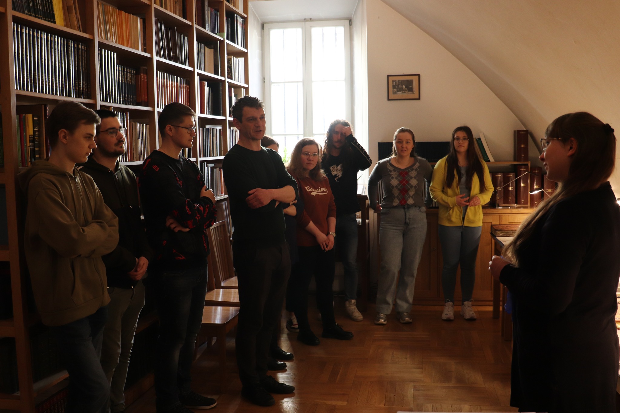 W dniu 20 kwietnia 2023 r. Archiwum Nauki PAN i PAU gościło w swoich murach dra Bartosza Drzewieckiego wraz ze studentami archiwistyki Uniwersytetu Pedagogicznego im. KEN w Krakowie. Grupy zapoznały się z historią i działalnością naszej instytucji, materiałami archiwalnymi Towarzystwa Naukowego Krakowskiego, Polskiej Akademii Umiejętności (m.in. Komisji Historii Sztuki, Komisji Etnograficznej), Zespołu Badawczego Dziejów Oświaty w latach okupacji hitlerowskiej 1939—1945 oraz wybranymi archiwaliami ze spuścizn uczonych. Uzupełnienie pokazu stanowiła prezentacja dwóch magazynów archiwalnych oraz krótka prelekcja na temat podstaw przechowywania i zabezpieczania dokumentów.