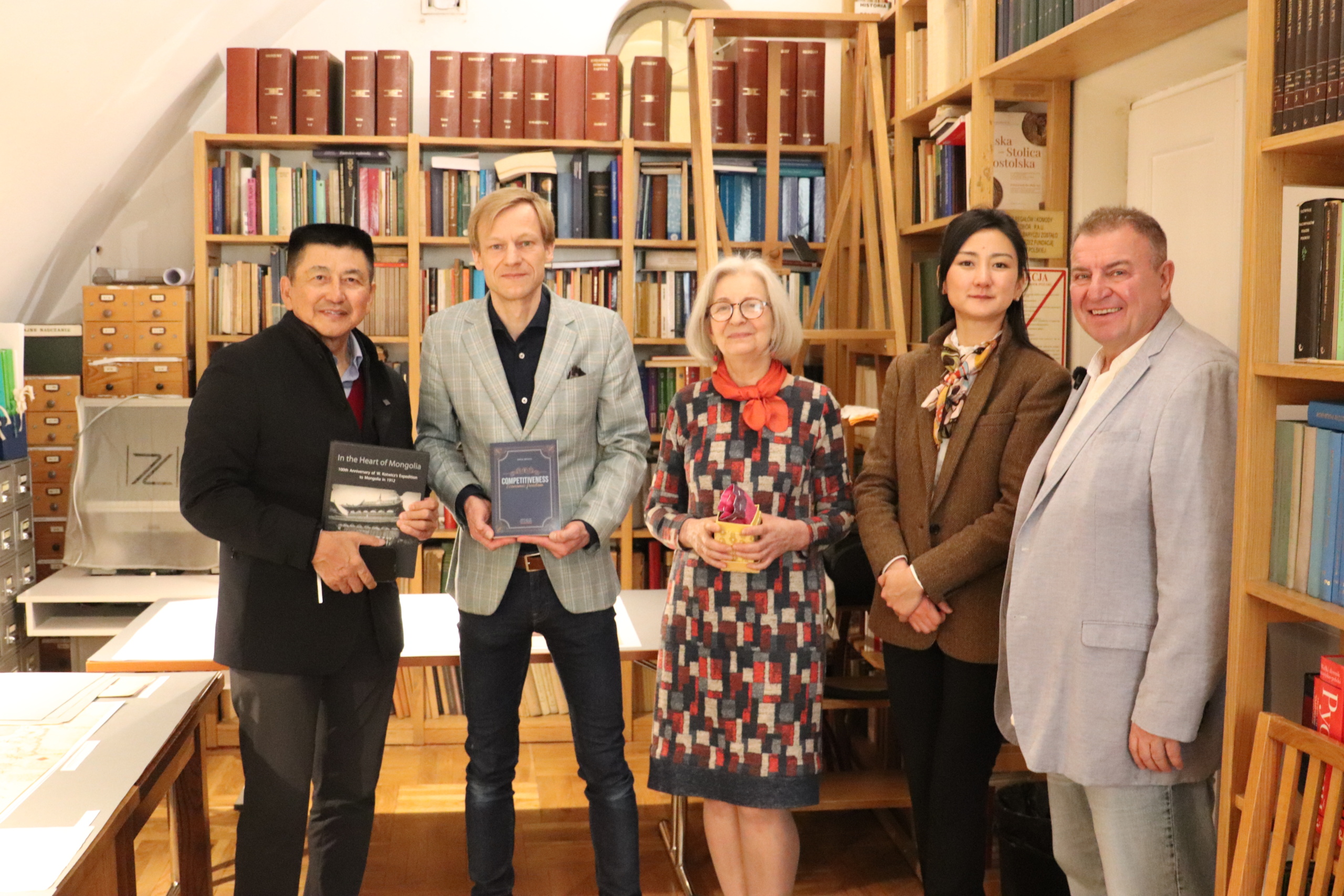 Naturalnym miejscem do odwiedzin było dla niego Archiwum Nauki PAN i PAU. W dniu 8 marca br. (sobota) kustosz Ewa Dziurzyńska przygotowała specjalny pokaz archiwaliów ze spuścizny orientalisty prof. Władysława Kotwicza, w której przechowywane są unikatowe materiały do dziejów mongolskiej państwowości i kultury. Działalność naukowa Kotwicza, jego badania nad zabytkami języka mongolskiego, a w szczególności wyprawa uczonego do tego kraju w 1912 r. będą jednymi z tematów, pojawiających się w filmie p. Jargalsaikhana.